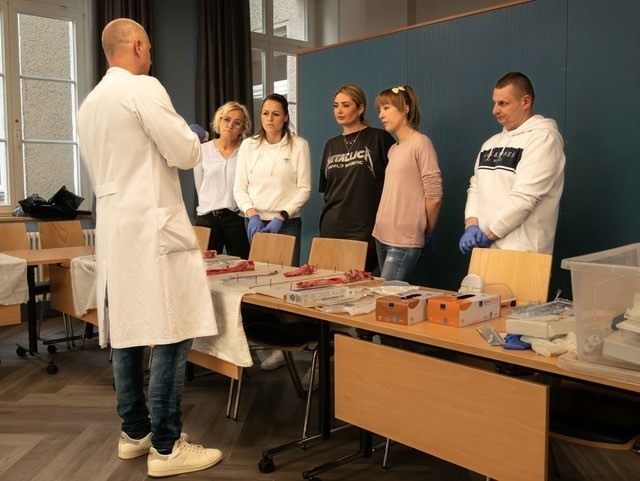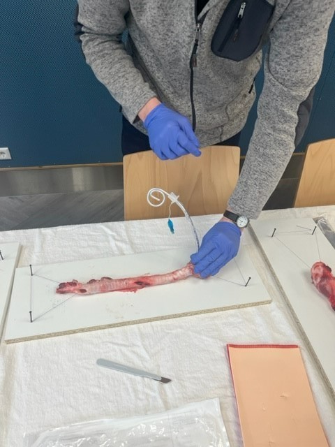 Das Besondere daran war, dass an echten Biomodellen gearbeitet wurde. Schweinegurgeln sind der menschlichen Anatomie sehr ähnlich. Die Modelle wurden freundlicherweise von einem lokalen Fleischer zur Verfügung gestellt.